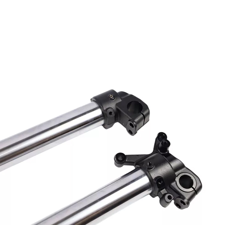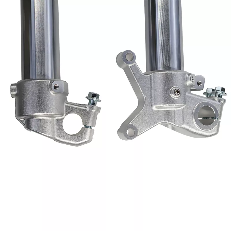 Forc tosaigh gairmiúil tógtha do ghluaisrothair easbhóthair, déanta as cóimhiotal alúmanaim agus cruach soladach, tá sé éadrom agus buan. Ag baint úsáide as meascán d'ola agus earrach chun vibrations a ionsú, ionsúnn an t-ionsúire turraing Forc Tosaigh Inbhéartaithe Tosaigh Rothar Leictreach na vibrations de bharr dromchlaí bóthair míchothrom, laghdaíonn sé an mothú bumpy le linn marcaíochta, agus feabhsaíonn sé compord marcaíochta.