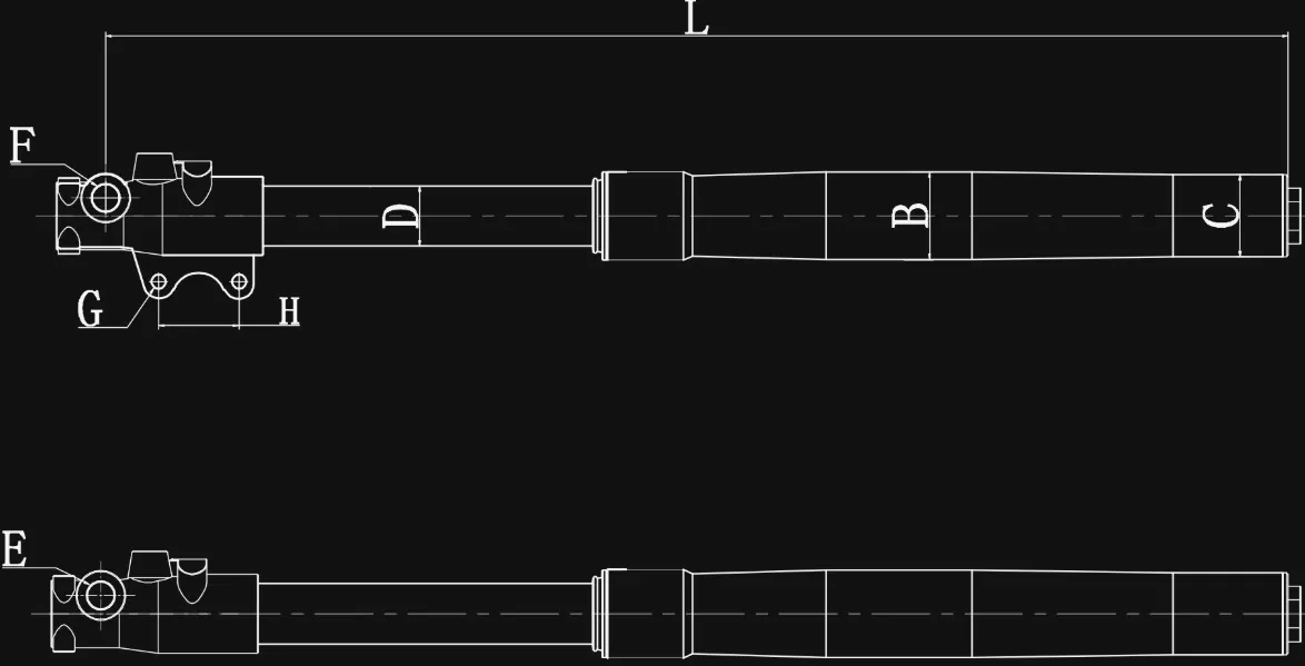 Tá an t-Urthálaí Turraing Gluaisrothar Aonair inchoigeartaithe Razor mx500 deartha go speisialta le haghaidh feithiclí easbhóthair mar Razor MX500, MX650, SX500, agus RSF650, chomh maith le mionfheithiclí rásaíochta. Rinneadh na paraiméadair lárnacha a chalabrú agus a mheaitseáil arís agus arís eile. Is é 45mm an méid uachtarach, is é 48mm an méid is ísle. Tairgeann an feadán istigh dhá shonraíocht 33mm agus 37mm le roghnú. Tacaíonn an dá pholl acastóra chlé agus ar dheis comhoiriúnacht 12mm nó 15mm, is é 8.2mm trastomhas an poll coscáin, is é 44mm an spásáil poll, agus is é 100 - 200mm an stróc inchoigeartaithe, a mheaitseáil go foirfe leis an dearadh feithicle bunaidh.